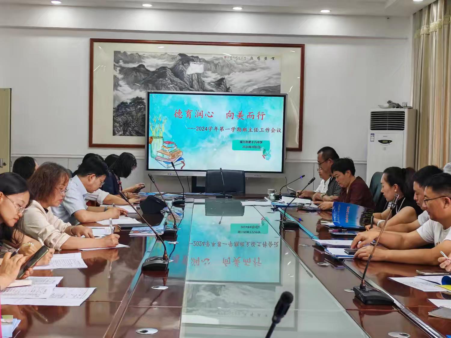 “风落一片叶,万物迎新秋”。为了全面贯彻落实党的教育方针和“立德树人”的根本任务。进一步加强我校班主任队伍建设,促进学校德育工作平稳有序、高效开展,2024年9月3日,银川市第十八中学召开了2024-2025学年第一学期班主任会议。