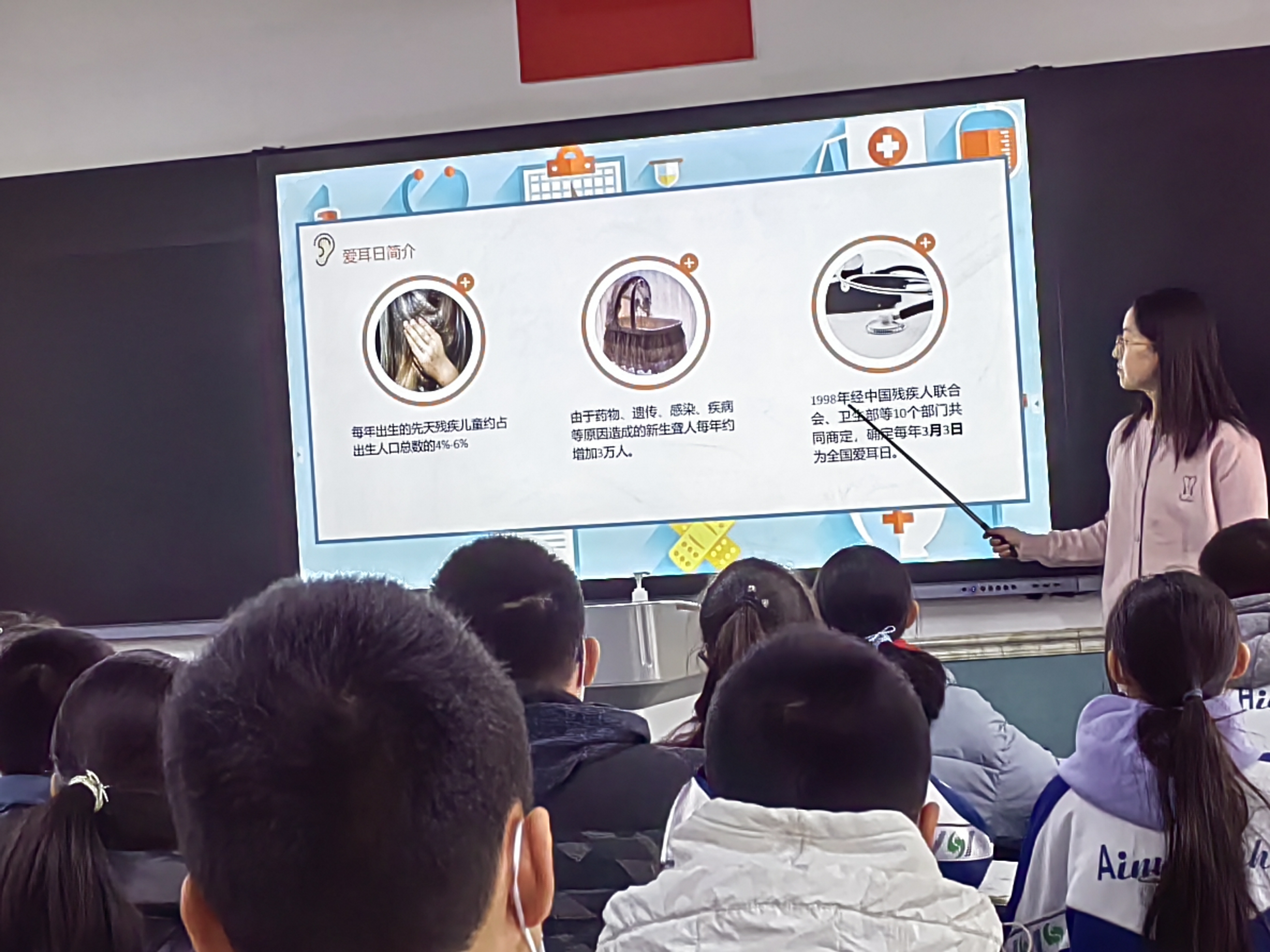 2.七年级班级利用早读时间开展爱耳日主题班队会,普及听