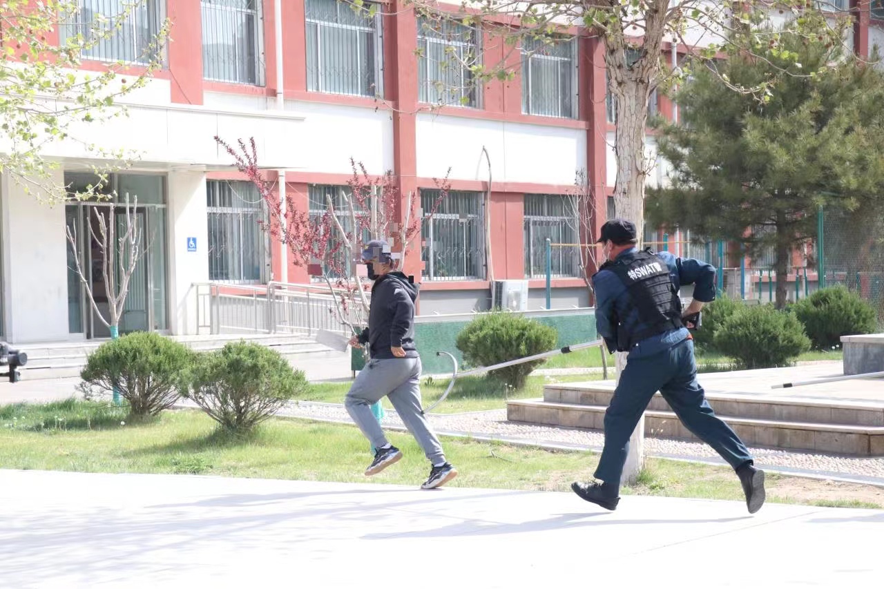 为了有效防范突发伤害事件,切实保障师生人身安全,及时处置侵害师生安全的恶性事件,维护我校安全稳定,增强在真实情景下的心理素质和反恐防暴意识,提高师生应对能力,增强师生“生命第一”的意识,提升反恐防暴意识。同时对学校各方面力量的沟通协调能力、危急条件下的执行力进行磨合和检验,以促进学校综合反恐防暴意识与能力的提升,银川十八中于4月25日上午9:55组织全体师生进行了一次反恐防暴演练。