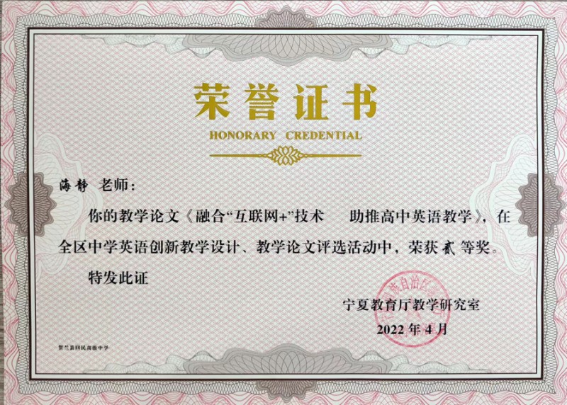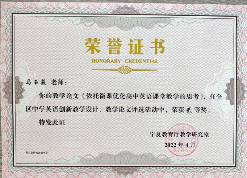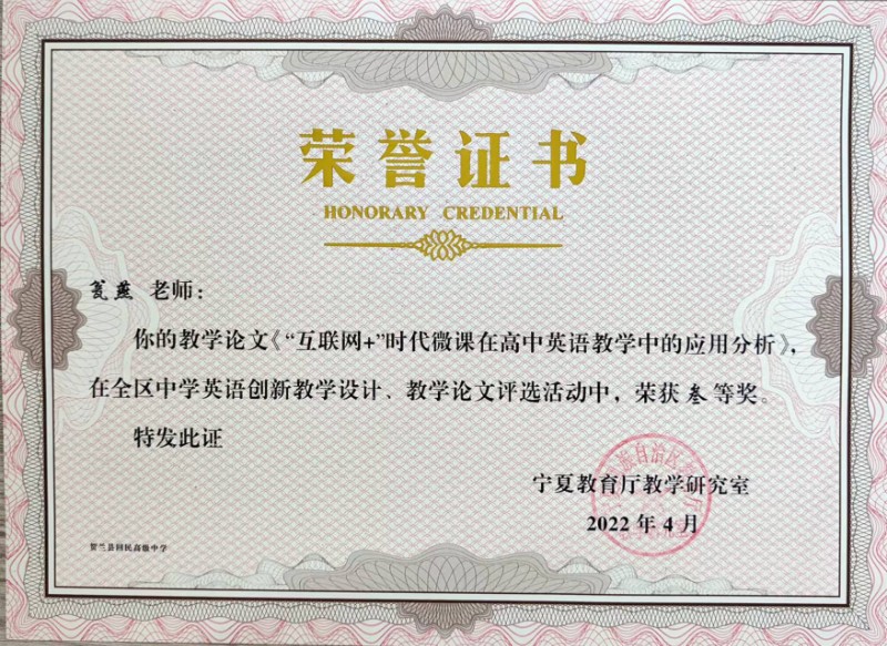 发布时间:2022-09-17 10:53 栏目:教师荣誉 发布单位:贺兰县第二高级中学 点击量:4700 【公开】
