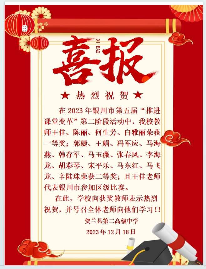 发布时间:2024-01-04 11:08 栏目:教师荣誉 发布单位:贺兰县第二高级中学 点击量:3800 【公开】