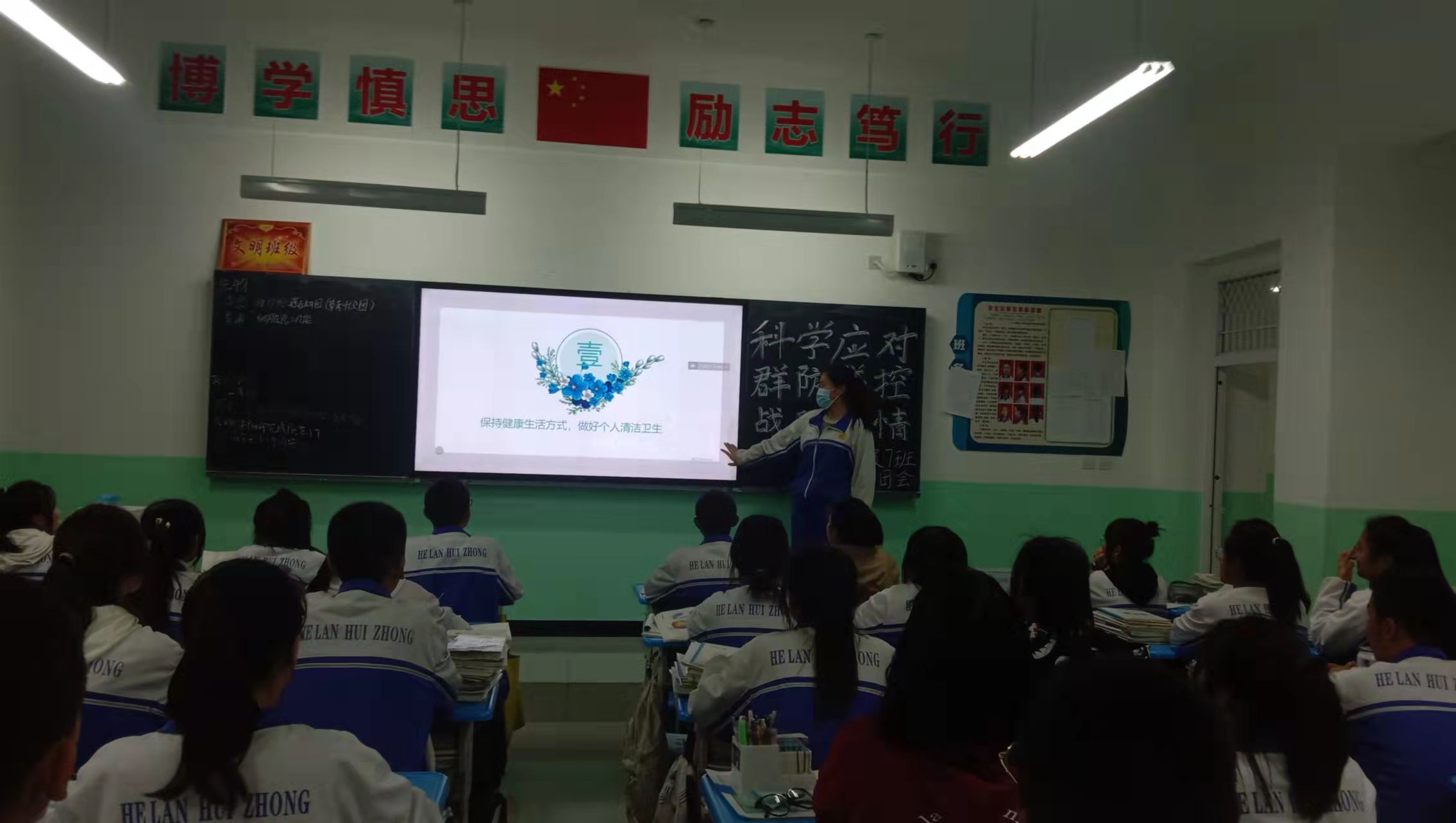 贺兰县第二高级中学《科学应对 群防群控 战胜疫情》主题团会活动图片资料