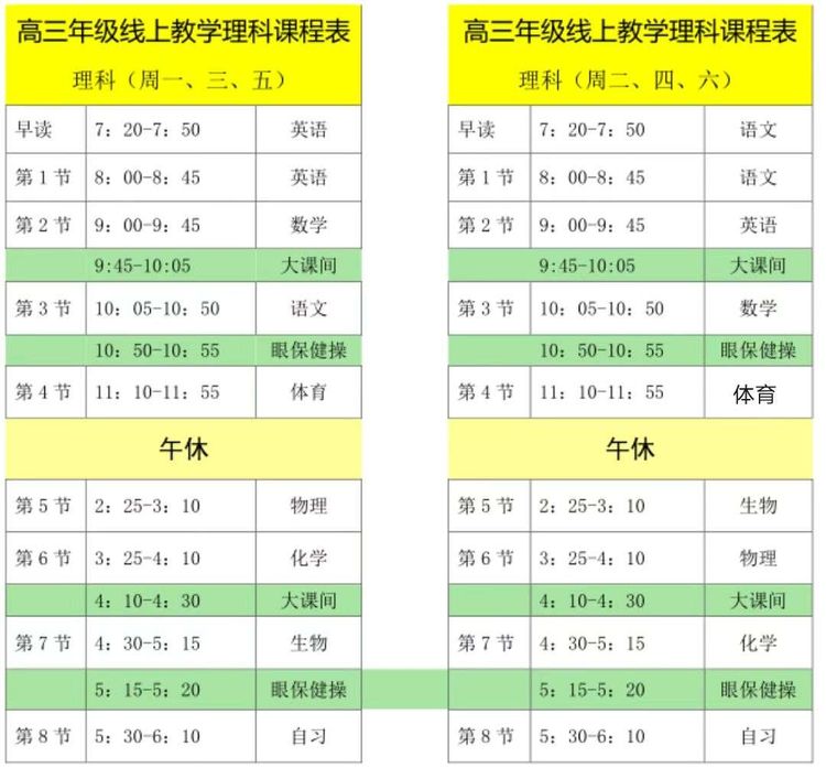 1.希望同学们能严格执行每日课表,按时上下课。