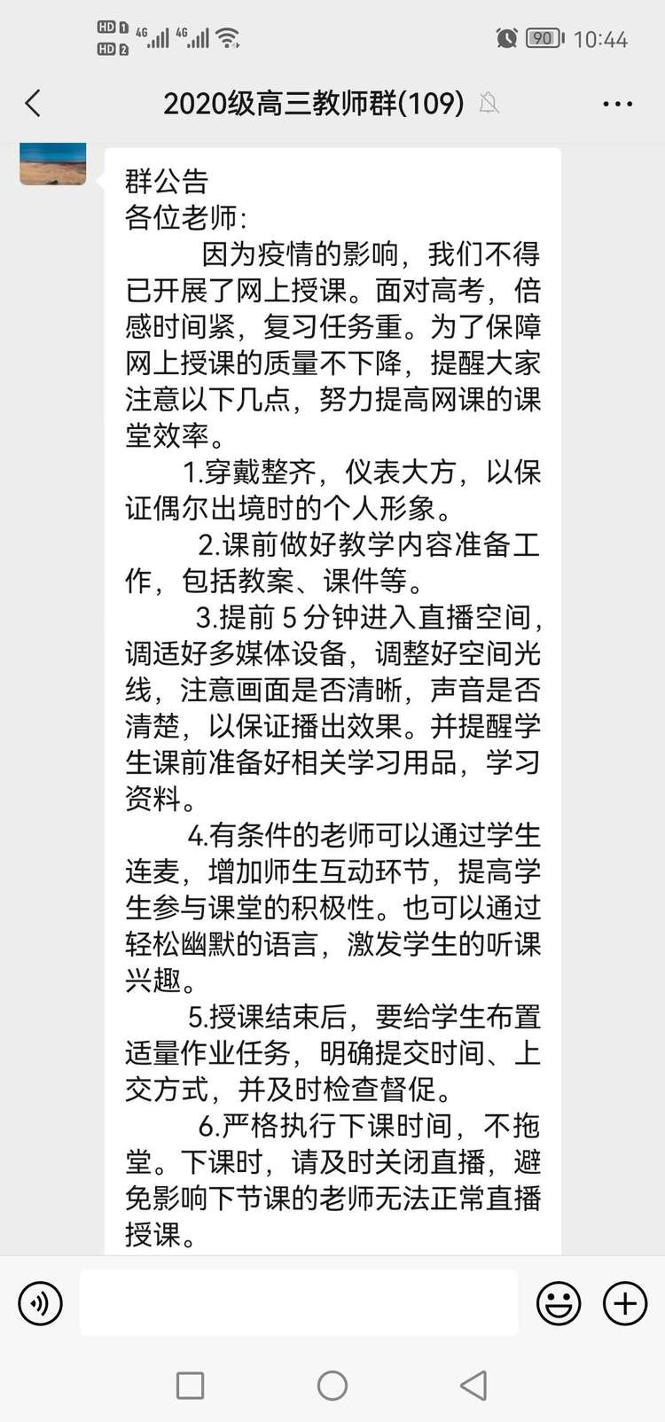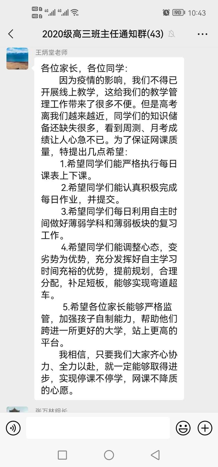 线上教学伊始,年级组领导对师生提出明确的要求和殷切的期望。