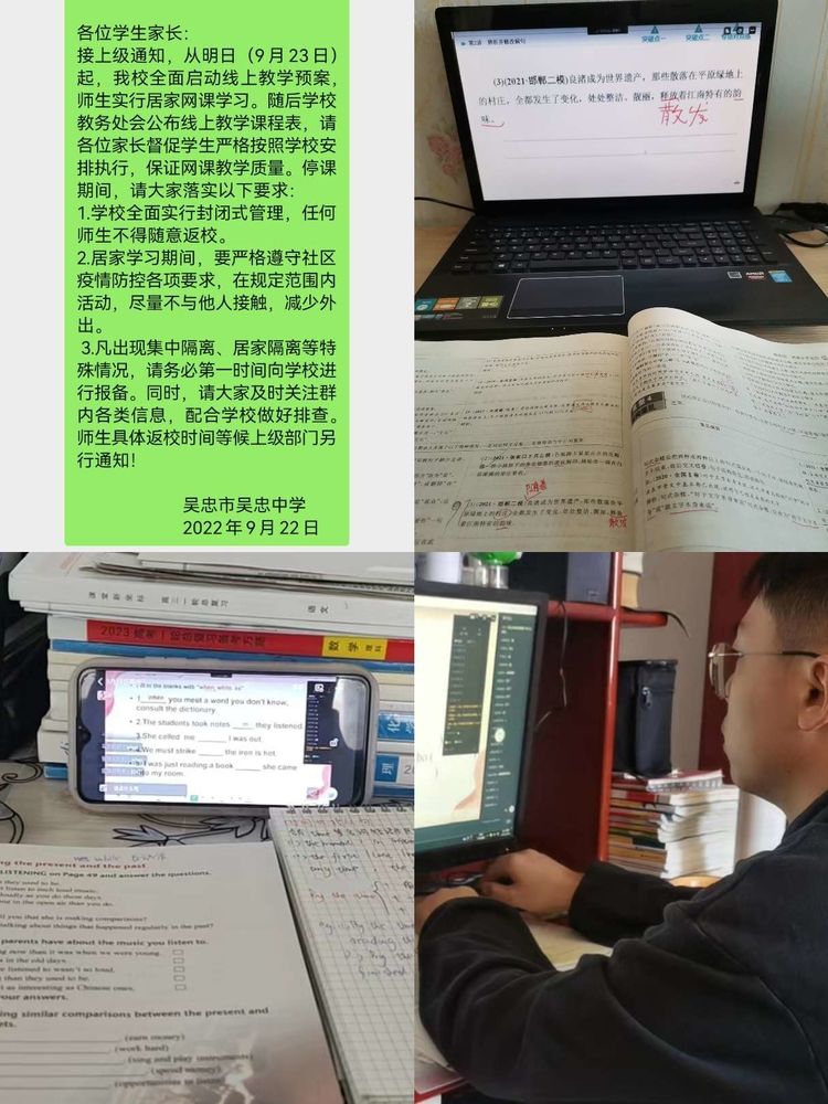 秋风起兮白云飞,草木黄落雁南归。秋意渐浓,新一轮新冠疫情的阴霾又一次笼罩在了塞上江南,打破了井然有序的工作与学习生活。学校认真贯彻吴忠市应对疫情防控的相关要求,落实吴忠市教育局《关于做好市直属学校疫情防控线上教学工作的通知》文件精神,全面启动线上教学预案,于9月22日晚9:00前,安排师生带好书本安全离校,并发布课表,于次日起开始线上教学工作。