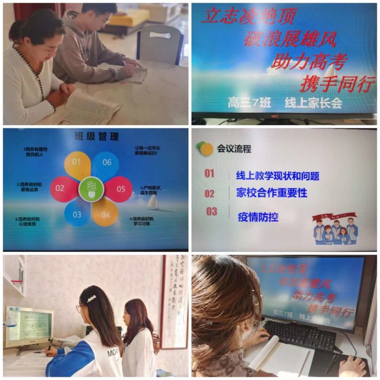 同时,各班主任结合学生网课学习情况,向家长反馈存在的问题、提出明确的要求。要求家长加强对于学生的管理监督、鼓励引导,督促提醒学生按时听课学习,认真完成作业;引导学生合理规划时间,劳逸结合;做好学生的后勤保障和心理疏导;确保学生“线上学习”不能打折扣、掉链子。